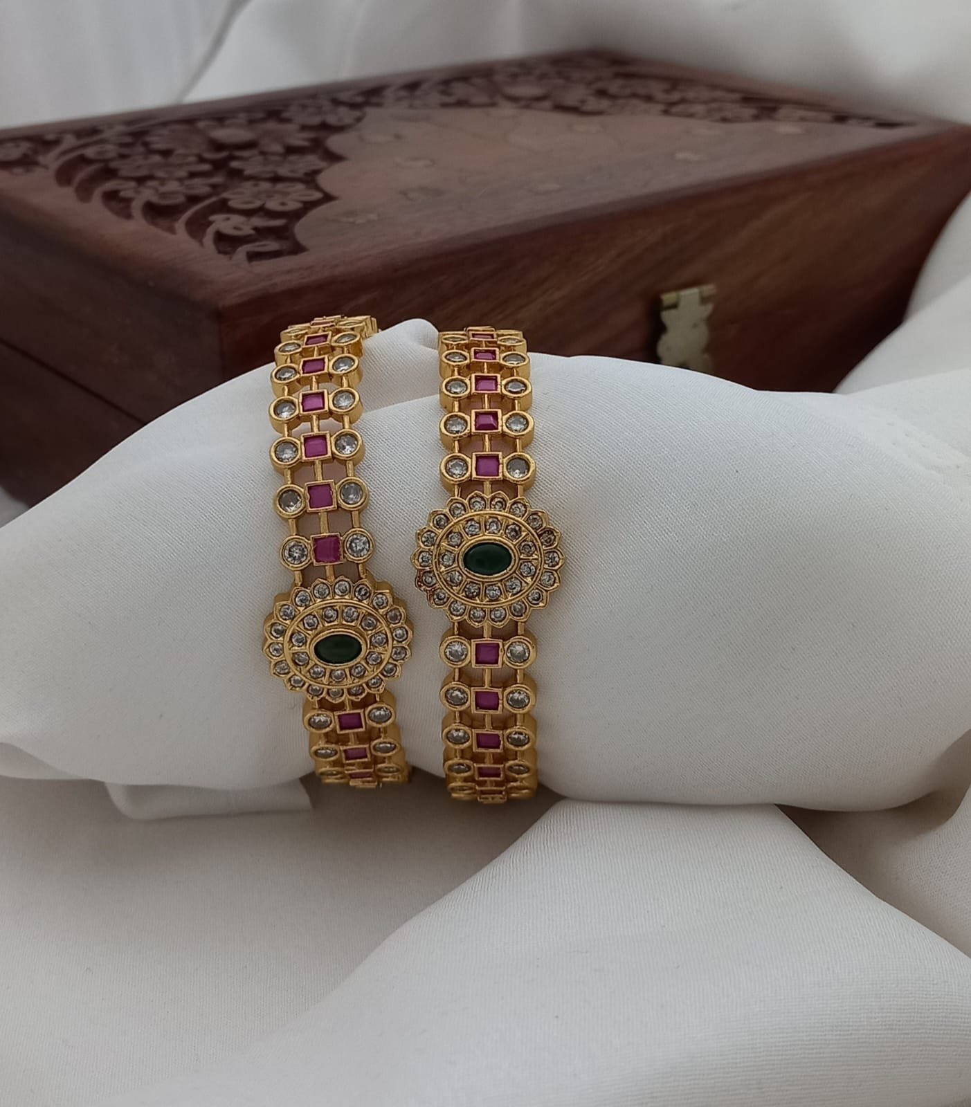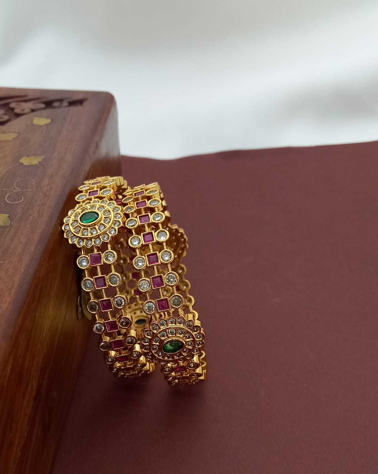 Premium Antique Finish Bangles with flower motifs.