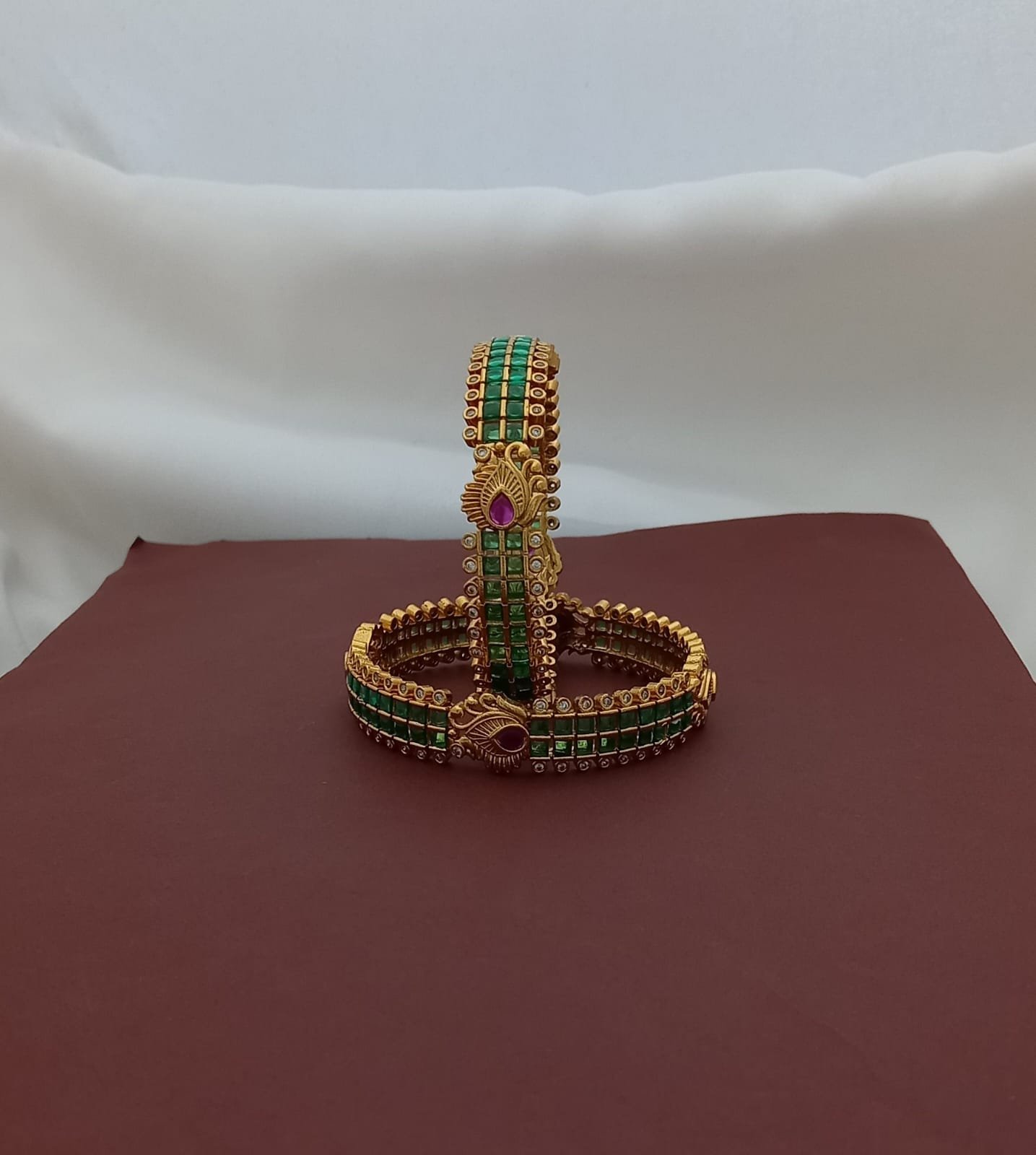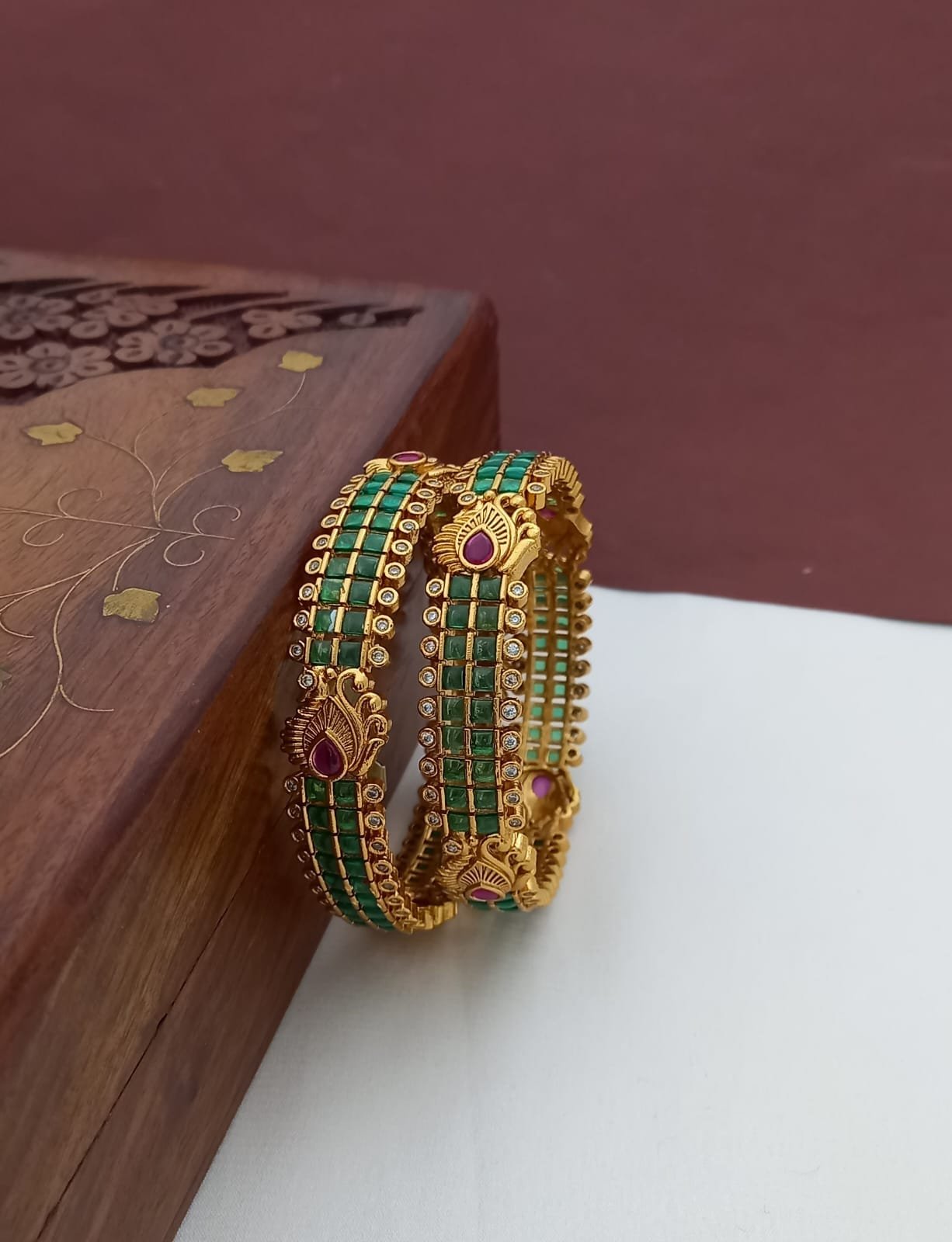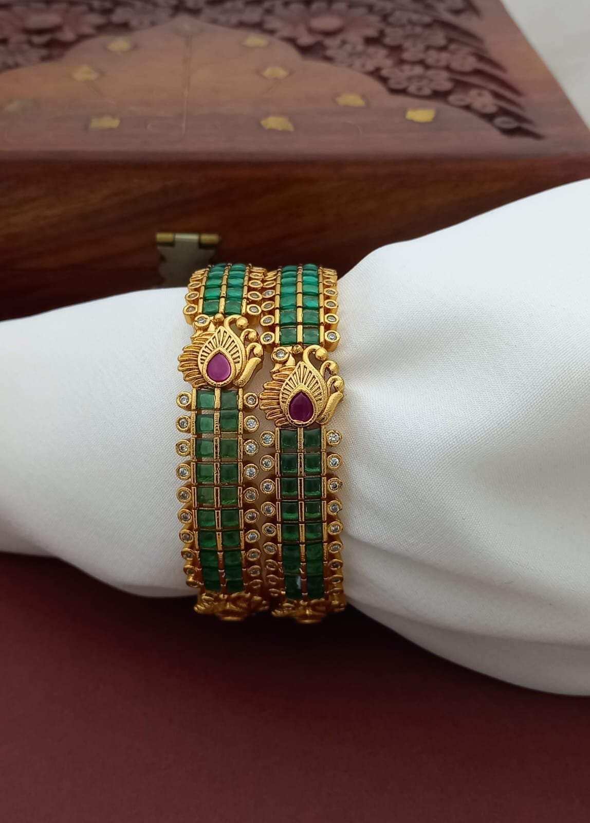 Premium Antique Finish Bangles with peacock feather motifs.