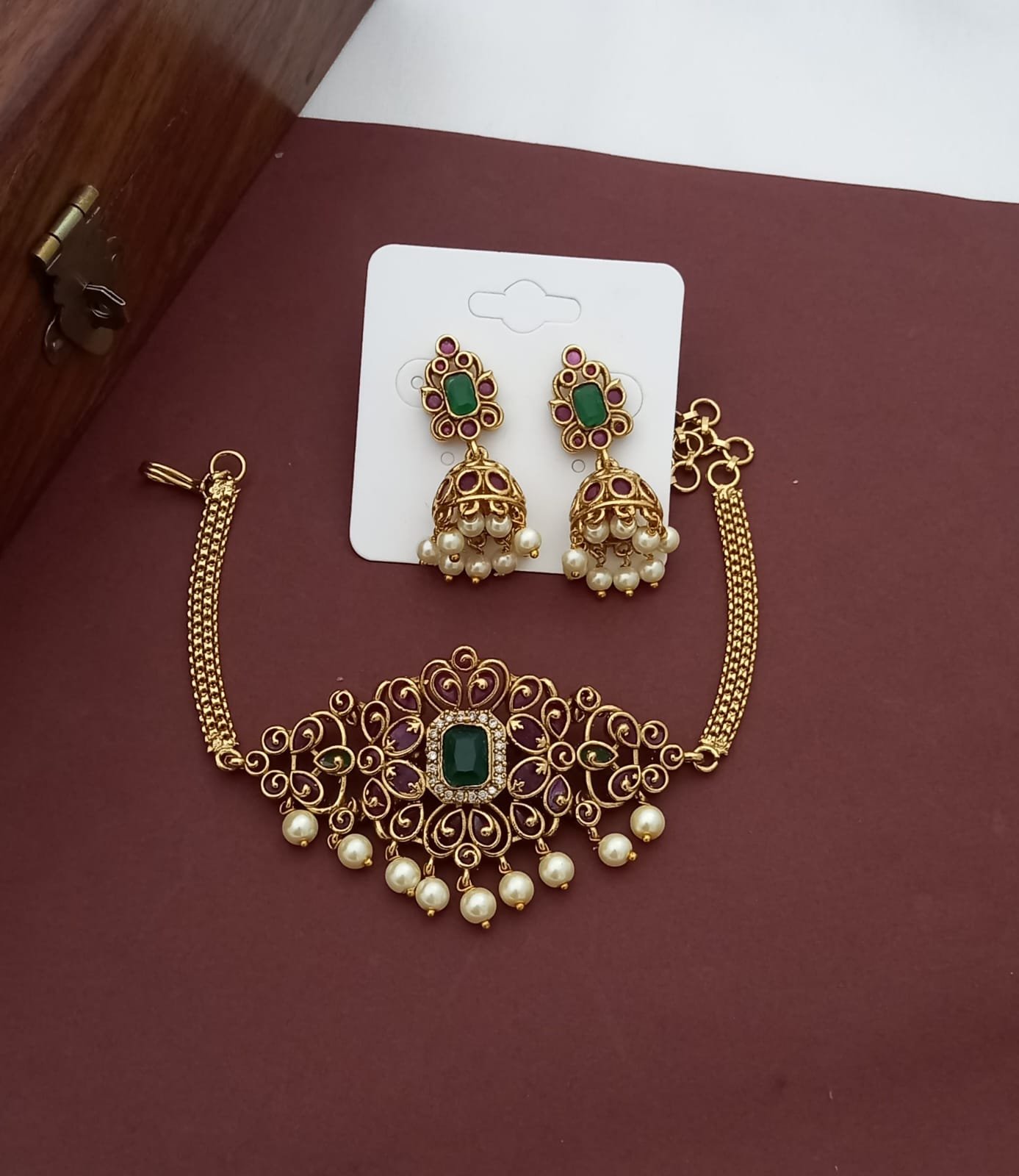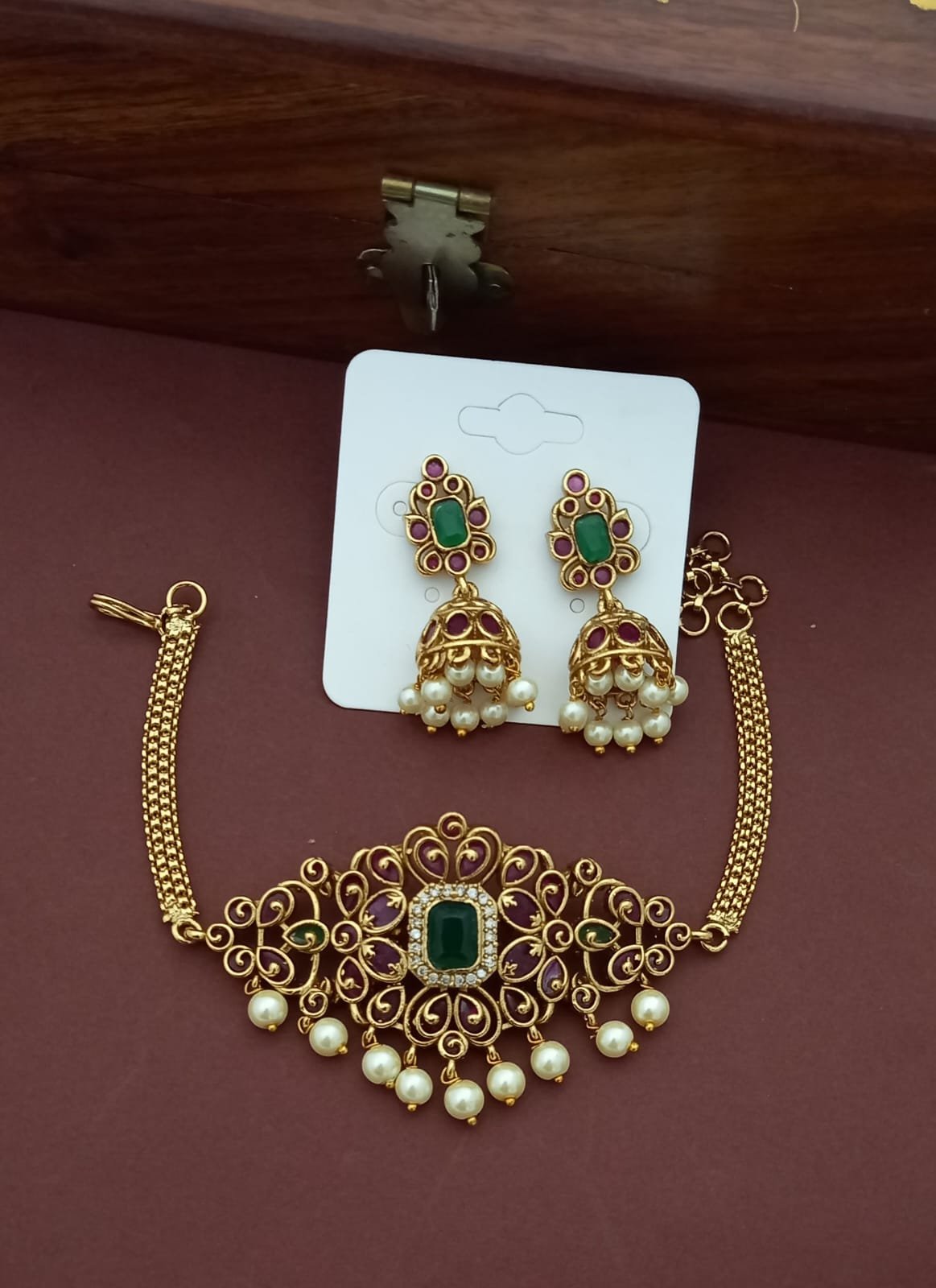 Premium Antique Finish Classy and Gorgeous Necklace with matching earrings.