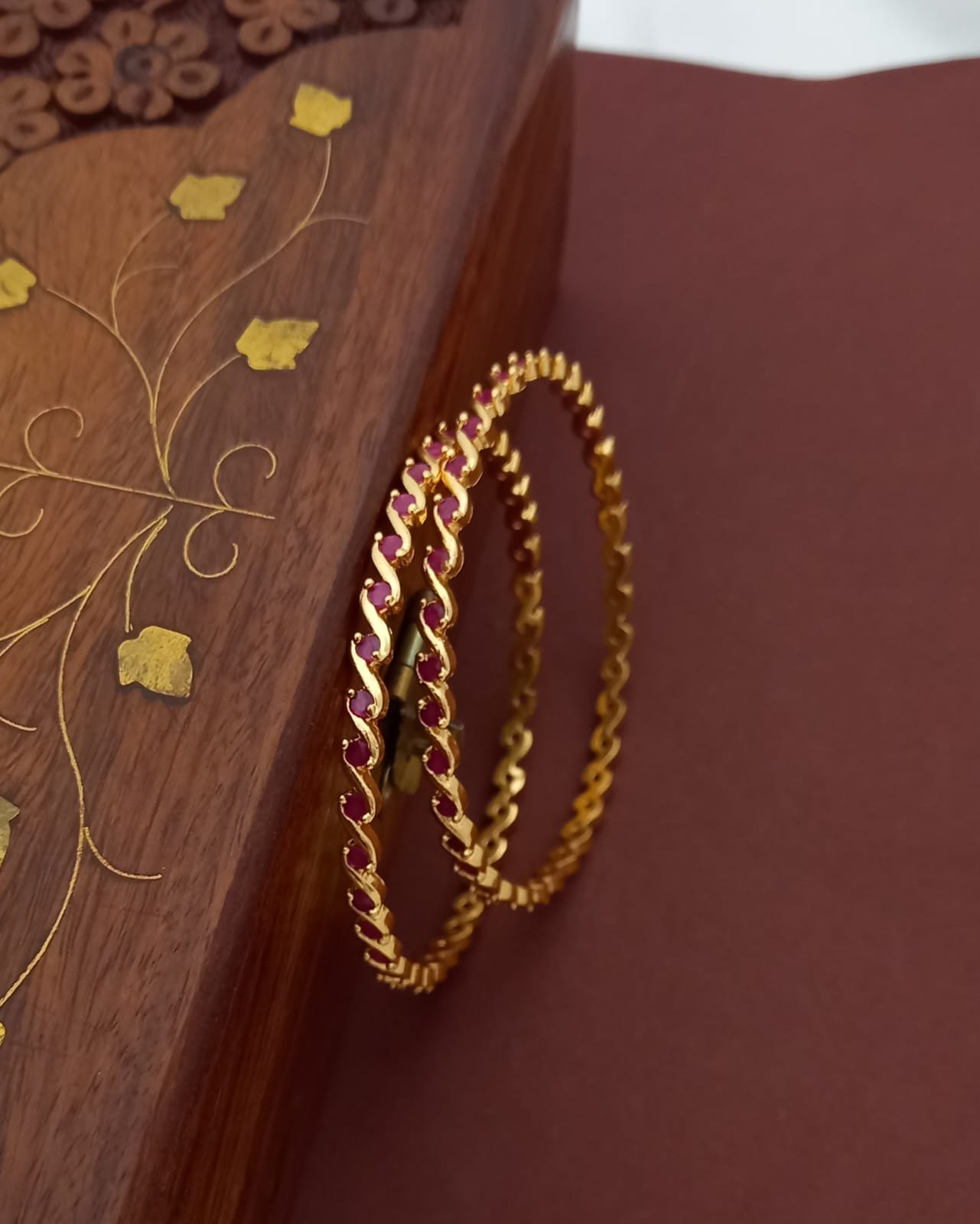 Premium Antique Finish Spiral Bangle Ruby ( 2 Bangles) BG268
