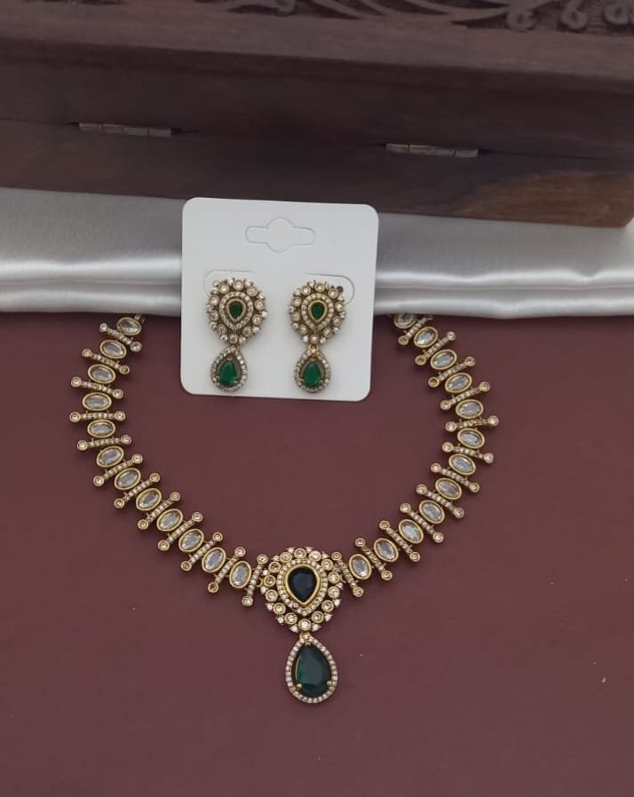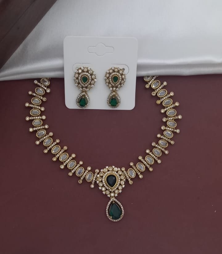Beautiful, elegant Victorian Necklace set with matching earrings. Perfect matching for green saree or pair with red, black or half white saree for a royal contrast.